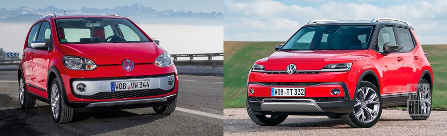 На фото слева — вседорожная версия Cross up! образца 2013 года. Справа — рисунок стороннего художника, который изобразил T-Track довольно странным образом, не в стиле последних Т-машин.Источник: https://www.drive.ru/news/volkswagen/598aefb8ec05c4853d000029.html