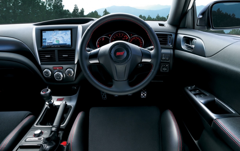 Салон TYPE RA выделяется эксклюзивным рулевым колесом с красной прострочкой и такой же прострочкой на ковшах-сиденьях, несколькими логотипами STI и накладкой на пороги в проёме передних дверей с логотипом tS. А в варианте NBR Challenge (на фото) кресла будут от Recaro (кожа и алькантара).
