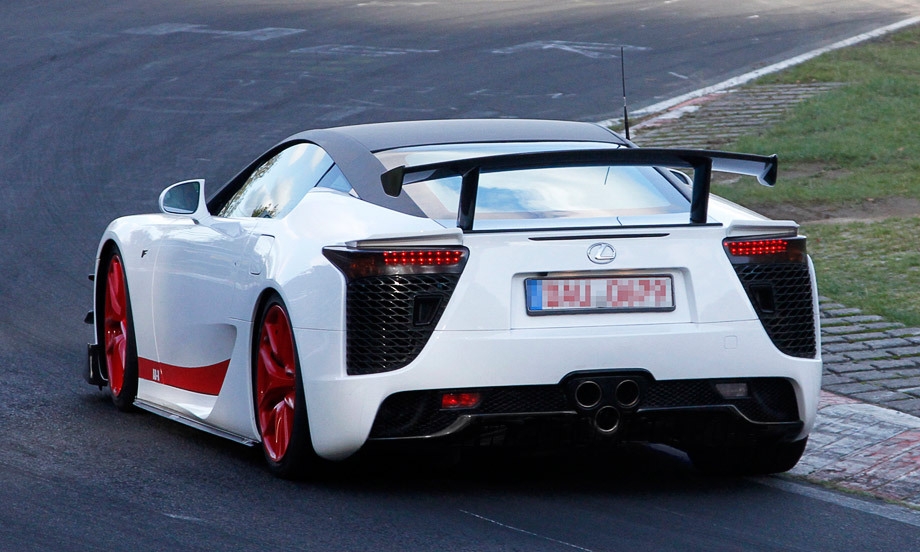 Суперкар LFA с самого начала задумывался как мелкотиражный (всего полтысячи экземпляров), и всё же японцы намерены подогревать интерес к модели ещё более эксклюзивными сериями. Вероятно, прототип одной из них мы видим на этих шпионских кадрах. Вряд ли кому-то 560-сильная двухдверка Lexus LFA кажется недостаточно быстрой. И всё же не зря в минувшем году японцы показали модификацию LFA Nürburgring Package с увеличенной на 10 «лошадок» мощностью, агрессивным аэродинамическим обвесом, перекалиброванной коробкой, переключающейся быстрее стандартной и ужесточённой подвеской с широкими возможностями настройки. Год назад такая машина прошла Северную петлю за 7:14.64, причём на штатных «гражданских» покрышках, а не на сликах. А в нынешнем году она уже предложена покупателям за $445 тысяч (при том что обычный LFA стоит $375 тысяч). Всего будет сделано 50 купе Nürburgring Package. Однако, похоже, и на этом особые предложения Лексуса не закончатся.